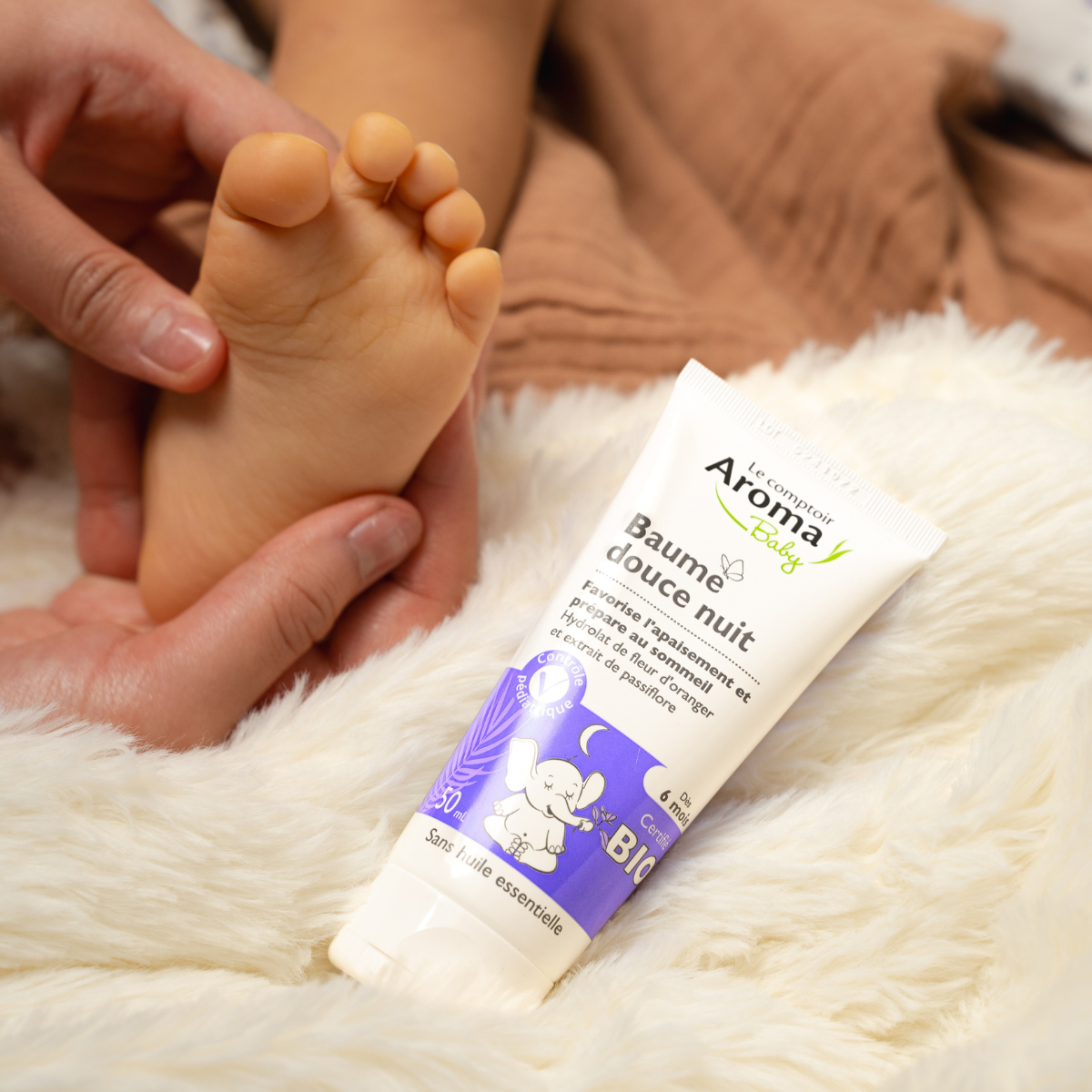 Le baume Douce Nuit est spécialement adapté pour accompagner et réconforter bébé lors du coucher.