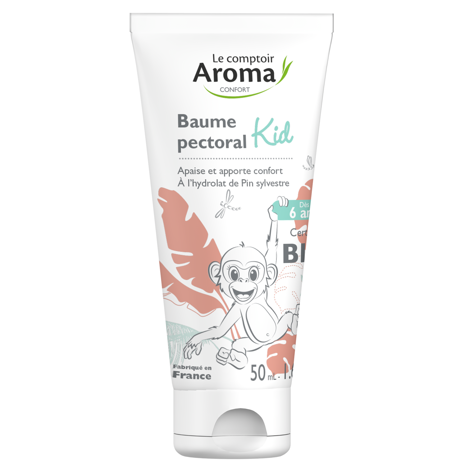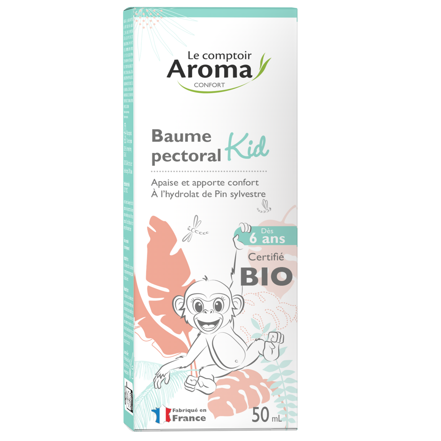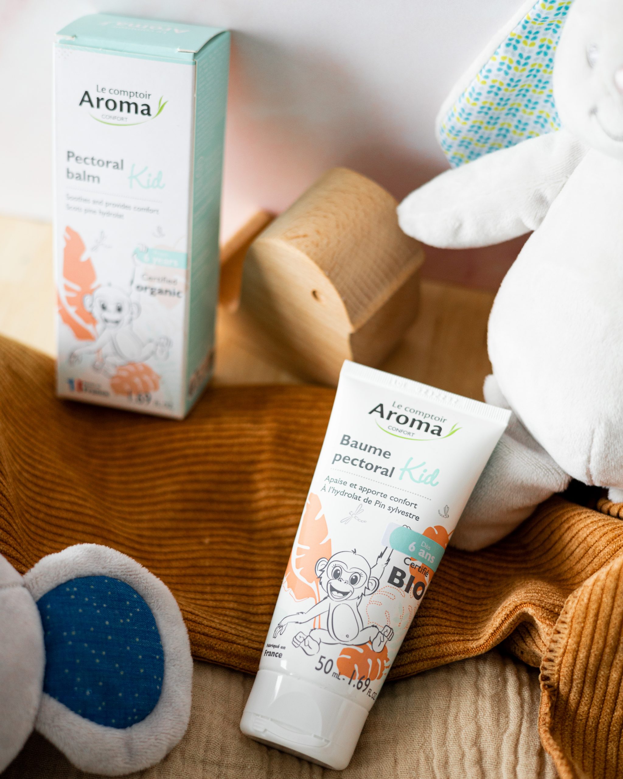 Par un massage en douceur, le baume pectoral aux huiles essentielles Bio apaise et apporte confort à l’enfant.