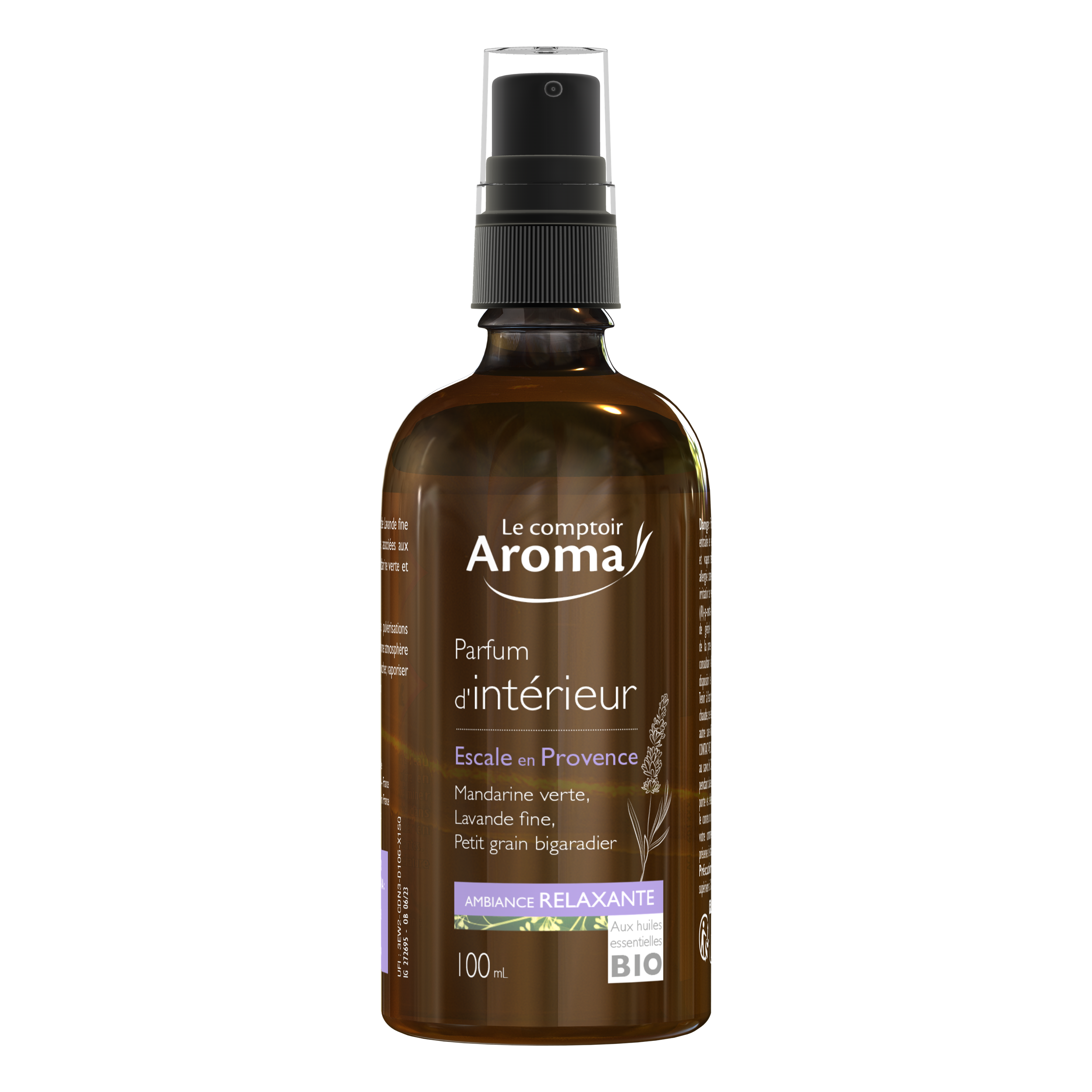 Un parfum d’intérieur aux notes subtiles d’huiles essentielles de Lavande fine emblématique de la région provençale, associées à la Mandarine verte et au Petit Grain Bigaradier, délicieusement fruités.